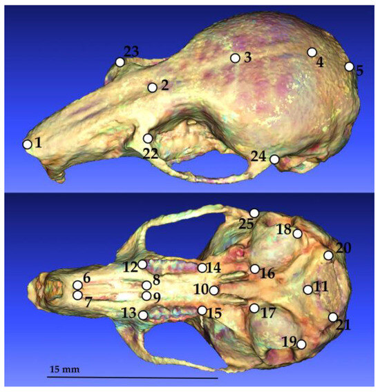 - Breno, M.; Leirs, H.; Van Dongen, S. Traditional and geometric morphometrics for studying skull morphology during growth in Mastomys natalensis (Rodentia: Muridae). J. Mammal. 2011, 92, 1395–1406. [Google Scholar] [CrossRef]