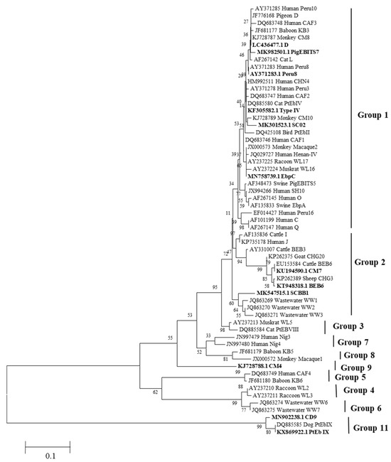 - Li, W.; Feng, Y.; Santin, M. Host Specificity of Enterocytozoon bieneusi and Public Health Implications. Trends Parasitol. 2019, 35, 436–451. [Google Scholar] [CrossRef] [PubMed]