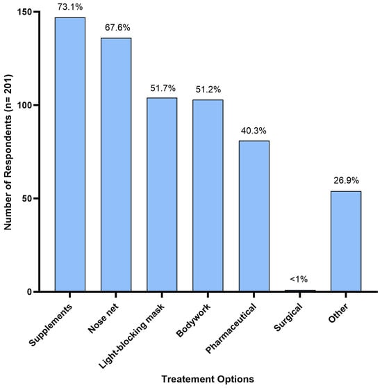 Treatment options used by Australian respondents (n = 201) to manage their horse’s headshaking symptoms.