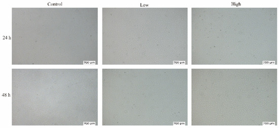 Microscopic examination of GCs’ growth with different doses of FSH. In the control group, no FSH was added to the medium; low dose means that 10 ng/mL FSH was added to the medium; and high dose means that 100 ng/mL FSH was added to the medium. Scale bars are 200 μm.