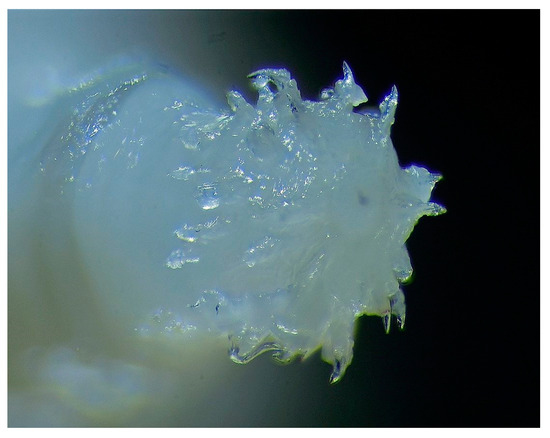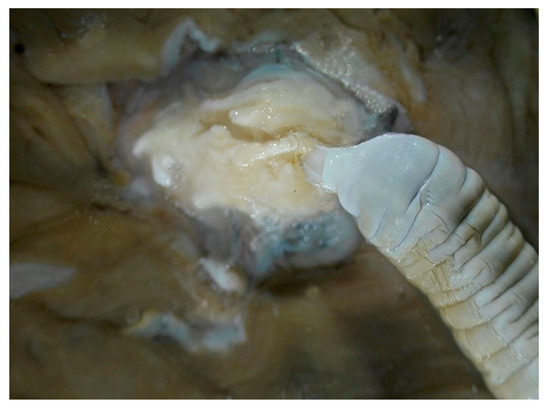 Samples were stored in a refrigerator at 4 °C until they were processed. Worms were identified according to the morphological features described by Kassai in 2003 [18]. The samples were identified using a PZ0 MST131-type and a Zeiss Ergaval and a Zeiss Discovery V8 stereo microscopes (Carl Zeiss Technique Ltd., Budapest, Hungary). The photos were taken with a Panasonic DMC-G6 camera connected to a Zeiss Discovery V8 stereomicroscope, with eight-times magnification, which realized three-dimensional pictures of the examined parasites (Figure 2, Figure 3 and Figure 4).