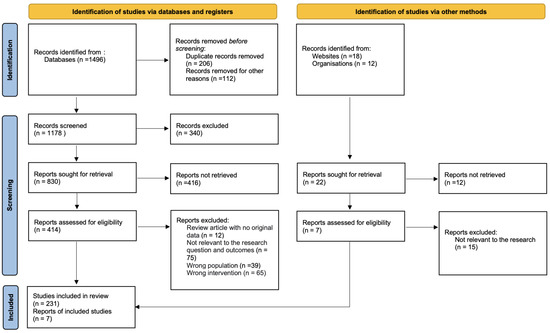 PRISMA flow diagram showing article selection, documenting included and excluded articles at each stage.