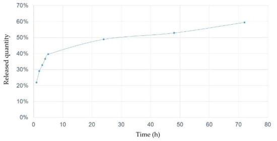 The CA/TBZ/ALG release kinetics in the EHT time (48 h) where less than 60% of the active ingredients in the emulsion containing matrix were released (Figure 2).