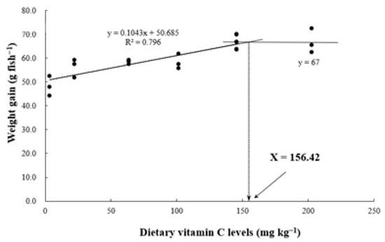 - Zou, W.; Lin, Z.; Huang, Y.; Limbu, S.M.; Rong, H.; Yu, C.; Lin, F.; Wen, X. Effect of dietary vitamin C on growth performance, body composition and biochemical parameters of juvenile Chu’s croaker (Nibea coibor). Aquac. Nutr. 2019, 26, 60–73. [Google Scholar] [CrossRef]