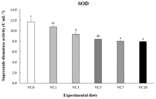 - Liang, X.P.; Li, Y.; Hou, Y.M.; Qiu, H.; Zhou, Q.C. Effect of dietary vitamin C on the growth performance, antioxidant ability and innate immunity of juvenile yellow catfish (Pelteobagrus fulvidraco Richardson). Aquac. Res. 2017, 48, 149–160. [Google Scholar] [CrossRef]