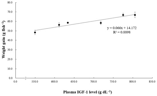 - Kawanago, M.; Takemura, S.; Ishizuka, R.; Shioya, I. Plasma components and hepatic insulin-like growth factor expression indicate nutritional status in yellowtail Seriola quinqueradiata. N. Am. J. Aquac. 2014, 76, 143–152. [Google Scholar] [CrossRef]