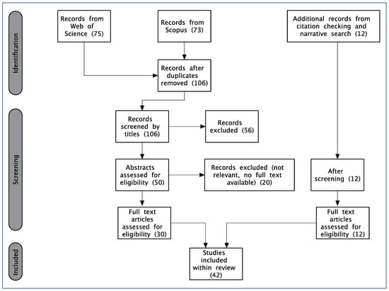 - Page, M.J.; McKenzie, J.E.; Bossuyt, P.M.; Boutron, I.; Hoffmann, T.C.; Mulrow, C.D.; Shamseer, L.; Tetzlaff, J.M.; Akl, E.A.; Brennan, S.E.; et al. The PRISMA 2020 statement: An updated guideline for reporting systematic reviews. Brit. Med. J. 2021, 372, n71. [Google Scholar] [CrossRef]