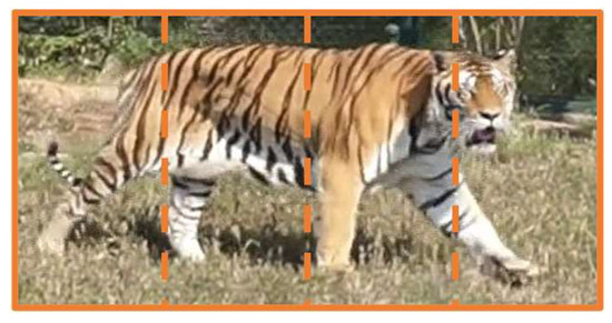 Widespread distribution, low population density, unpredictable behavior patterns, and sensitivity to interference of wildlife pose significant challenges to monitoring work for some animal species. Traditional wildlife investigation techniques mainly include manual investigation, line sampling, collar tracking, and acoustic tracking using sound recording instruments [,]. However, each of these methods has certain disadvantages, so scientists strive to improve them. The Amur tiger, also known as the Siberian Tiger, is one of the subspecies of tigers. The Amur tiger is mainly distributed in the northeastern region of Asia and is listed as an endangered species in the Red List of Threatened Species by the World Conservation Union. There are only just over 500 Amur tigers left in the world, so it is crucial to strengthen the protection of the Amur tiger []. Moreover, the survival and reproduction of species populations are closely related to regional biodiversity and ecosystem functional integrity []. Therefore, re-evaluating the Amur tiger and its prey resources in natural environments such as nature reserves and national parks can help to statistically analyze the situation of Amur tiger resources and provide data reference for the next step of protection work [,]. At present, the most commonly used method for the re-ID of wild animals is manual discrimination. After receiving professional knowledge and training, wildlife protection professionals need to screen and distinguish a large amount of image data based on the fur pattern characteristics of the abdomen, head, neck, and other parts of the Amur tiger [,]. To reduce errors, it is necessary for multiple people to simultaneously identify and verify the recognition results, which requires a large workload, high cost, and low efficiency.