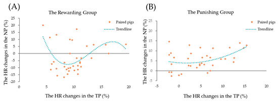 Figure 6. Regression of the heart rate of TPs and NPs. (A) The rewarding group; (B) the punishing group.