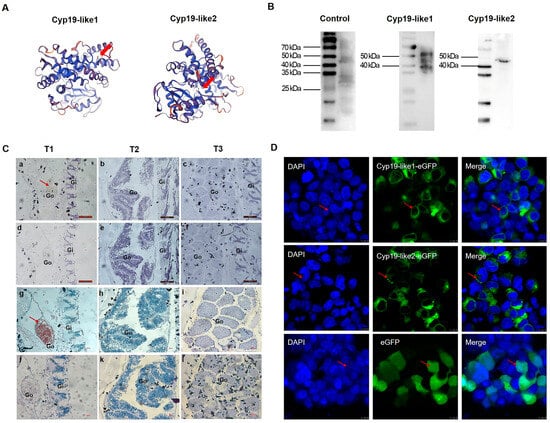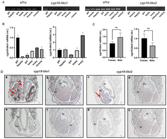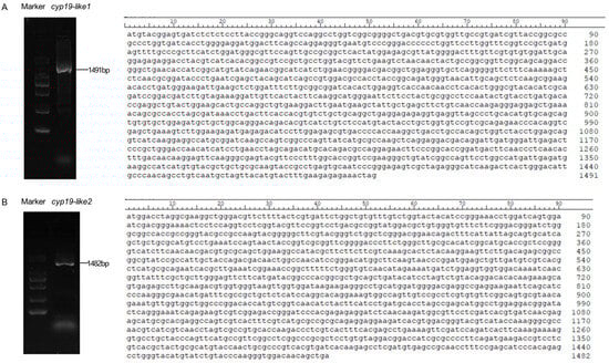 3.3. Expression Level of Two cyp19-like Genes in the Gonads of Male and Female Amphioxus