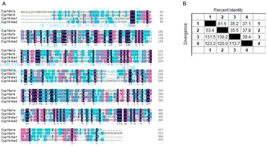3.2.2. Comparison of Sequence Similarity between Zebrafish and Amphioxus Cyp19