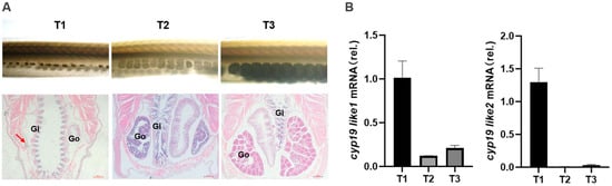 3.3.2. Expression of cyp19 at Different Stages