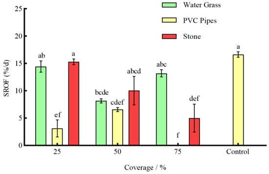 The SROF of S. asotus on P. clarkii under different coverage rates.