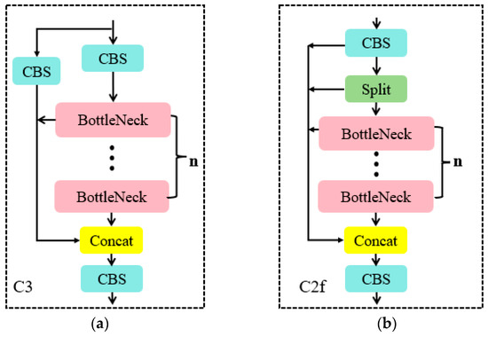 Figure 4. Partial module structure diagram: (a) C3, (b) C2f. - YOLOv8 replaces the detection head with a decoupled-head structure, separating the classification head from the detection head. Additionally, it switches from Anchor-Based to Anchor-Free detection.