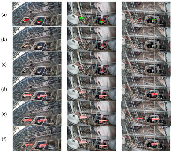 Real and fake pigeon egg-detection results of different models: (a) Faster R-CNN (b) YOLOv5s (c) YOLOv7 (d) YOLOv8n (e) YOLOv8s (f) YOLOv8n-PG.
