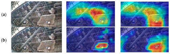 From Figure 10, it can be observed that the pigeon farm environment is complex. When YOLOv8n is used for the detection of real and fake pigeon eggs, the background area introduces noise to the model, causing it to focus on some background areas with weaker focus. However, after adding the attention module to improve the model, the noise from the background area is significantly reduced. The model can accurately focus on the pigeon egg area, effectively enhancing the model’s ability to extract features of pigeon egg targets in complex environments.