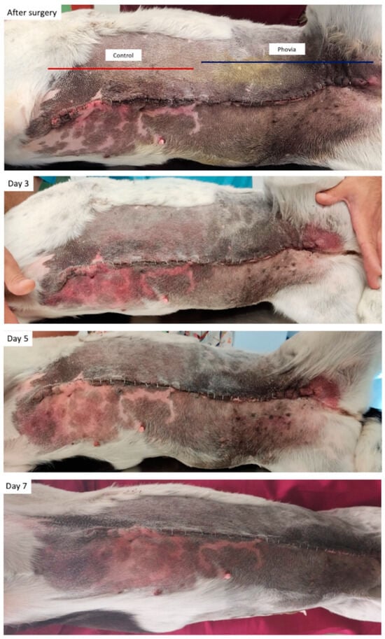 - Gammel, J.E.; Biskup, J.J.; Drum, M.G.; Newkirk, K.; Lux, C.N. Effects of Low-Level Laser Therapy on the Healing of Surgically Closed Incisions and Surgically Created Open Wounds in Dogs. Vet. Surg. 2018, 47, 499–506. [Google Scholar] [CrossRef] [PubMed]