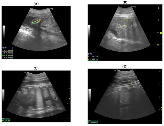 - Gil, E.M.; Garcia, D.A.; Froes, T.R. In utero development of the fetal intestine: Sonographic evaluation and correlation with gestational age and fetal maturity in dogs. Theriogenology 2015, 84, 681–686. [Google Scholar] [CrossRef] [PubMed]