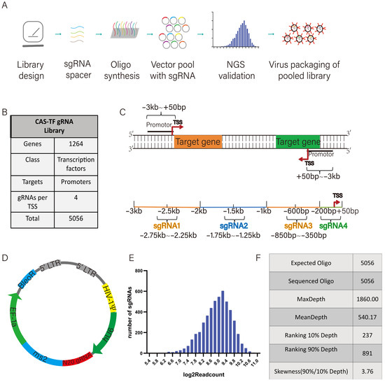 Oligos encoding the sgRNA library with ~5046 specific sgRNA sequences targeting 1264 transcription factors were synthesized via a programmable microarray using the Synthesizer and cloned as a pool into the pLenti_sgRNA (MS2) vector (GenScript, Nanjing, China). Library quality was assessed by NGS with a coverage of 100% (GenScript, Nanjing, China). The packaging of the sgRNA library was completed by the Nanjing Genscript company.