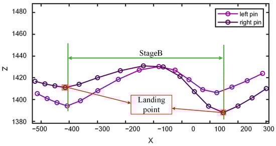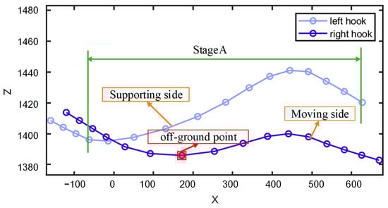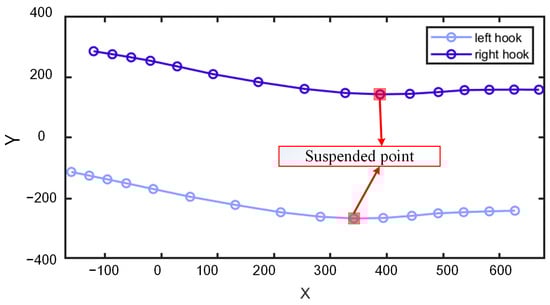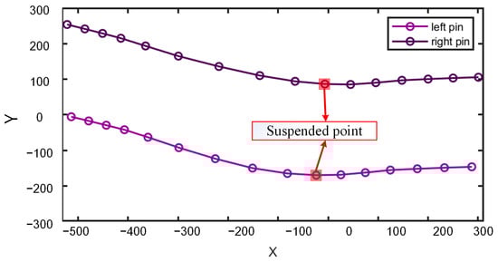 Based on the positioning results of the left and right hook bones and the pin bone, we plotted their X–Y and X–Z motion curves and pre-processed the curves. First, we detected and replaced outliers in the curves. Outliers were defined as elements within a specified window length that differ from the local median by more than three times the local median absolute deviation (MAD), a method known as the Hampel filter. This paper used a window length of 5 to detect outliers, and outliers were replaced using linear interpolation based on adjacent non-outlier values. Subsequently, the curve was smoothed using weighted linear least squares and a quadratic polynomial model for local regression, with smoothing performed using 7 data points.