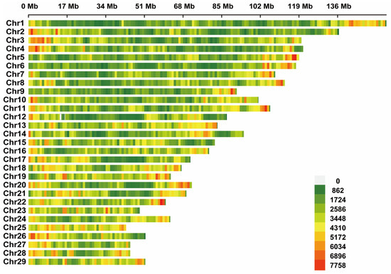 Single nucleotide polymorphism (SNP) density distribution map of the Lüliang black goat (LBG) population.