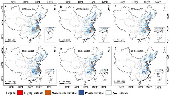 | Northern suitable habitats | Current | 34,040.63 | 2873.98 | 8664.91 | 7273.45 | 667.08 | 7744.09 |