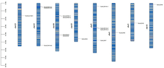 Chromosome location diagram of the ScALDH gene family in S. constricta.