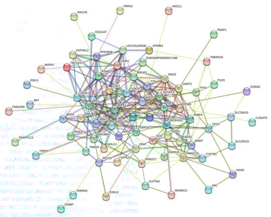 - Voillet, V.; San Cristobal, M.; Père, M.C.; Billon, Y.; Canario, L.; Liaubet, L.; Lefaucheur, L. Integrated Analysis of Proteomic and Transcriptomic Data Highlights Late Fetal Muscle Maturation Process. Mol. Cell. Proteom. 2018, 17, 672–693. [Google Scholar] [CrossRef]