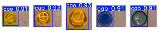 The training results of YOLOv8 are shown in Figure 5. This figure presents the detection results of five types of feed troughs. It can be seen that the trained model demonstrates a robust performance in accurately identifying and localizing the target feed troughs.