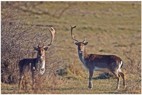 According to the statement of the Institutional Review Board (NAIK MBK MÁB 004-09/2018), researchers collected samples from the carcasses of legally harvested fallow deer hinds. The carcasses were provided for the sampling by the authorized game managers, in full compliance with all ethical and legal regulations. Furthermore, Decision No. (TO-04H39/405-2/2020) of the Government Office of Tolna County, dated 5 June 2020, authorized the shooting of antlered fallow deer outside the hunting season for research purposes.