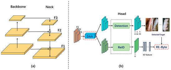 The Joint Detection and Embedding (JDE) model [26] effectively integrates object detection and identity re-identification (re-ID) into a single network architecture. By utilizing joint learning, the JDE model not only accurately localizes objects but also associates identity information across consecutive frames, significantly improving tracking efficiency and reducing computational complexity. The baseline network of JDE is derived from YOLOv3’s [27] Darknet-53 and Feature Pyramid Network (FPN).The CSTrack model [28] builds on JDE by further optimizing both detection and re-ID tasks. It addresses the issue of “over-competition” between these tasks, where competition in representation learning can cause confusion and negatively impact overall performance. Architecturally, CSTrack enhances JDE by incorporating a feature decoupling module, creating separate feature maps tailored to each task, allowing detection and re-ID to learn independently and improve performance.