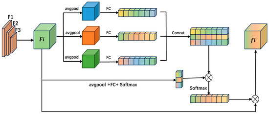 Next, the domain adaptive response vector is used to adaptively weight the channels of the original input feature map , and the model’s perception of the environment is realized by converting to the scaling factor of the input features of through the sigmoid function. The calculation formula is as follows: