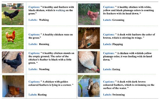 Advancements in deep learning have revolutionized poultry behavior analysis. Early studies employed image processing algorithms, later transitioning to deep learning techniques [5,6,7]. For instance, Lin et al. [8] used CNNs to monitor broilers’ heat stress responses, while Okinda et al. [9] developed a 2D posture descriptor-based system for disease detection. Other studies have integrated object detection (YOLOv3) and classification models (ResNet50) to enhance accuracy. However, most methods rely on single-modal visual features, neglecting contextual information and interpretability [10]. Furthermore, Cuan et al. [11] proposed a CNN-based approach to analyze acoustic features of sick and healthy chickens to achieve promising detection rates.