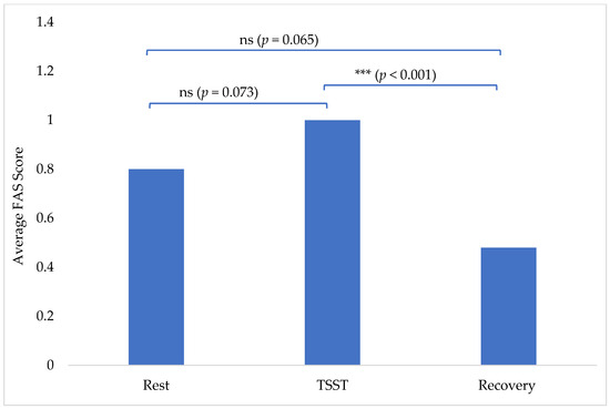 Average FAS score per phase: rest, TSST, and recovery. (ns = no statistical significance and *** = statistical significance).