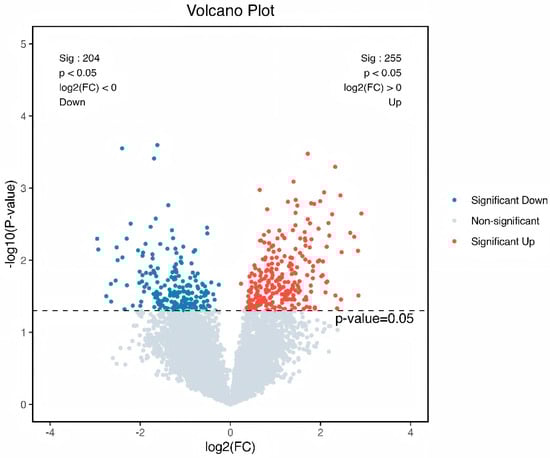Raw data from UPLC-Q-TOF/MS were converted to mzXML files by the means of the Proteo Wizard MSconvert tool and subsequently processed using XCMS online software (Version 4.6.0; https://bioconductor.org/packages/release/bioc/html/xcms.html, accessed on 1 May 2024). The parameters for XCMS encompassed the following settings: feature detection centwave settings (Δm/z = 25 ppm; peakwidth = c(10,60)); retention time correction obiwarp settings (profStep = 1); and minfrac parameters set at 0.5 along with bw = 5 and mzwid = 0.025 for chromatogram alignment. Following normalization and integration via support vector regression methodologies, the processed data were uploaded into MetaboAnalyst version 4.0 for further assessment (www.metaboanalyst.ca). Orthogonal partial least squares discriminant analysis (OPLS-DA) in conjunction with three-dimensional principal component analysis (3D-PCA) for both positive and negative models was conducted subsequently to log the transformation and Pareto scaling operations. For each variable within the OPLS-DA models, variable importance projection values (VIPs) were computed to determine their contribution to classification efficacy; metabolites presenting VIP values greater than one underwent further scrutiny via a Student’s t-test at a univariate level where p < 0.05 signified statistical significance.