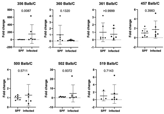 3.5. Additional Findings (ASF Analysis in SPF Balb/c and C57Bl/6J in Facility 1 and 2)