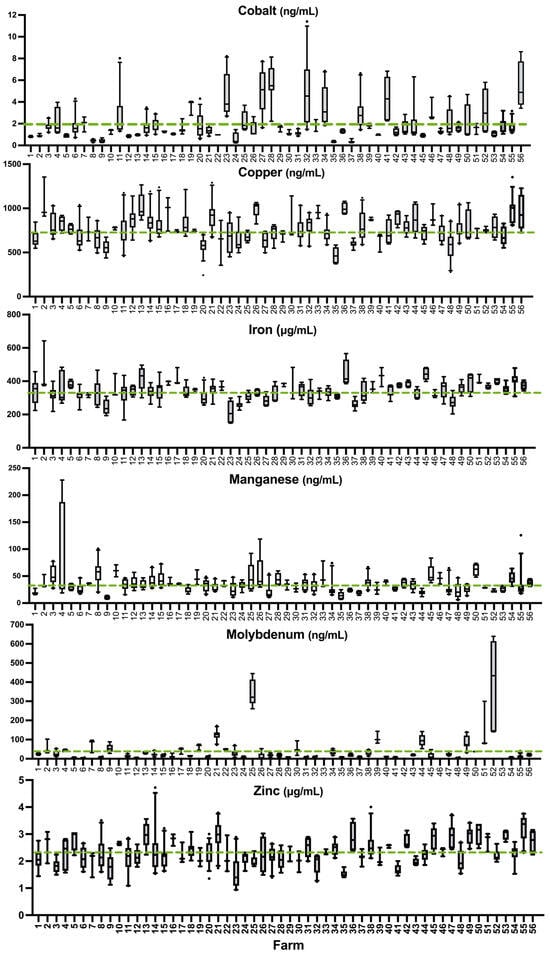Reference values for whole blood concentrations of As, Cd, Pb, and Se in sheep have been clinically established [,]. Various literature sources have previously reported reference values for other minerals in whole blood of sheep [,].