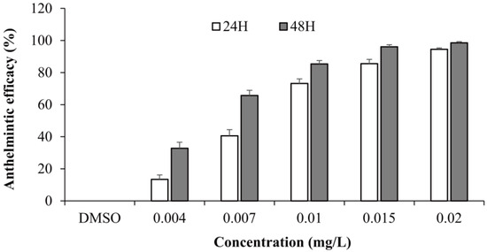 3.1. In Vivo Anthelmintic Activity