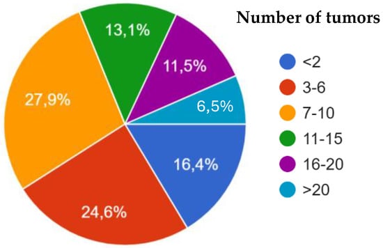 Regarding general case distribution, 68.8% of veterinarians encountered fewer than 10 cases of equine mucocutaneous tumors per year, while 31.1% reported managing more than 10 cases annually (Figure 1).
