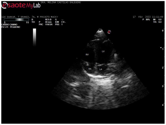 - Moura, L.S.; Rodrigues, R.P.S.; Silva, A.B.S.; Pessoa, G.T.; Sousa, F.C.A.; Alves, J.J.R.P.; Bezerra Neto, L.; Macedo, K.V.; Vieira, M.C.; Alves, F.R. Standard, strain and strain rate echocardiography wih two-dimensional speckle tracking in a capuchin monkey (Cebus apella, Linnaeus, 1758). Arq. Bras. Cardiol. Imagem. Cardiovasc. 2018, 31, 57–66. [Google Scholar]