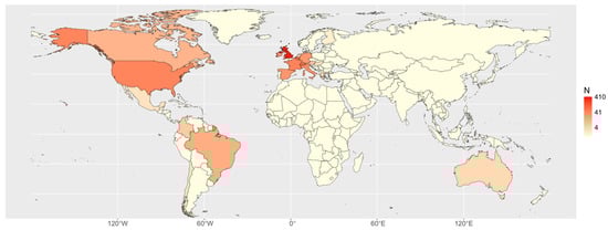 Overall, 63 centres from 22 countries collaborated in the systematic collection of data on donkeys and donkey–horse hybrids. Owing to the ongoing recruitment process, each centre commenced data collection on a different date, during the period from November 2020 to June 2023. Figure 1 presents a heat map that illustrates the spatial distribution of documented cases of donkeys and hybrids. After data cleaning, 825 cases were verified, comprising 757 donkeys and 68 hybrids (Figure 2).