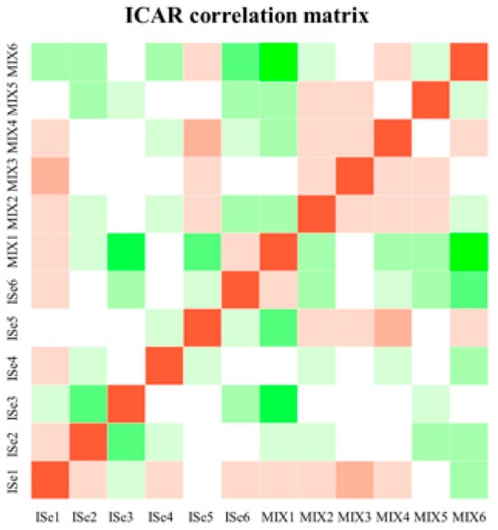 The ICAR correlation matrix of data derived from RNA-Seq analysis for each ICAR sample from heifers supplemented with a vitamin/mineral mix containing 35 ppm as ISe (n = 6) or a 1:1 mixture of ISe:Ose (MIX, n = 6). The average correlation among all samples was 0.96.