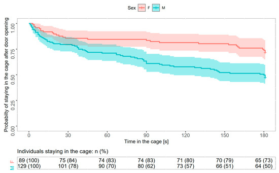 - Given sex differences in cognitive and learning abilities and risk-taking behavior [16,17,18], we expected higher activity levels in males, resulting in a higher probability of their escape from the cage.