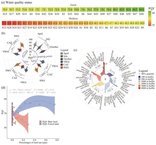 - Shi, P.; Zhang, Y.; Li, Z.B.; Li, P.; Xu, G.C. Influence of land use and land cover patterns on seasonal water quality at multi-spatial scales. Catena 2017, 151, 182–190. [Google Scholar] [CrossRef]