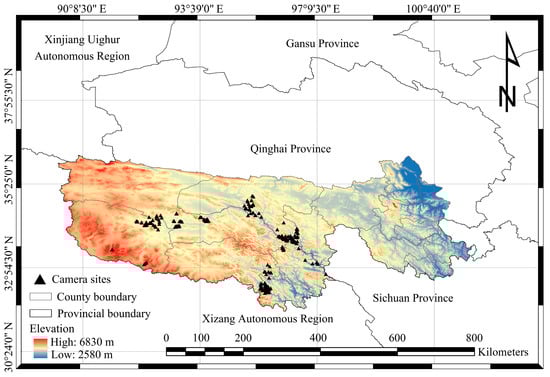 Locations of infrared camera trapping sites within the Sanjiangyuan Region.