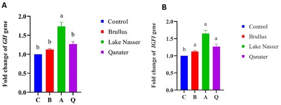 Ali, F.S.; Awad, S.T.; Ismail, M.; Hemeda, S.A.; El Nahas, A.F.; Abbas, E.M.; Mamoon, A.; Nazmi, H.; El-Haroun, E. Selection for Growth Performance in Oreochromis niloticus Across Different Aquatic Environments Using Growth Hormone Gene Polymorphisms. Animals 2025, 15, 2097. https://doi.org/10.3390/ani15142097