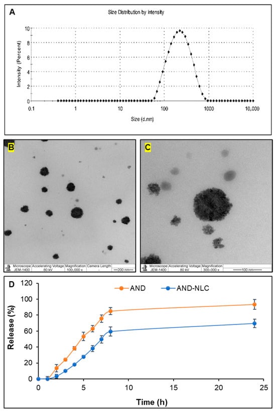 2.4. Encapsulation Efficiency and In Vitro Release of AND-NLC