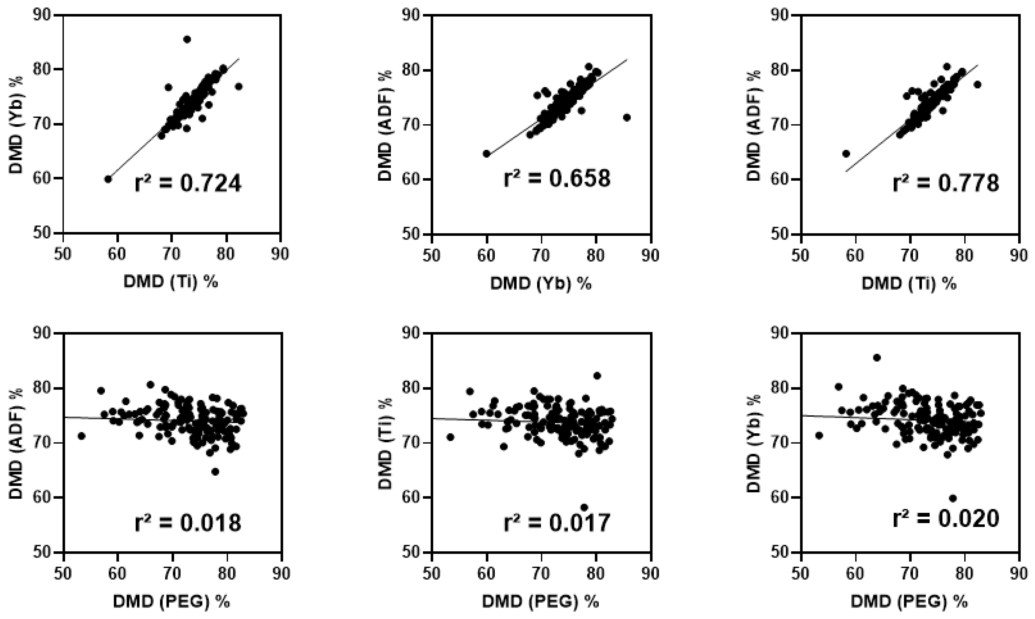 - Hassoun, P.; Bastianelli, D.; Autran, P.; Bocquier, F. Polyethylene glycol compared with ytterbium oxide as a total faecal output marker to predict organic matter intake of dairy ewes fed indoors or at pasture. Animal 2014, 8, 1420–1426. [Google Scholar] [CrossRef]