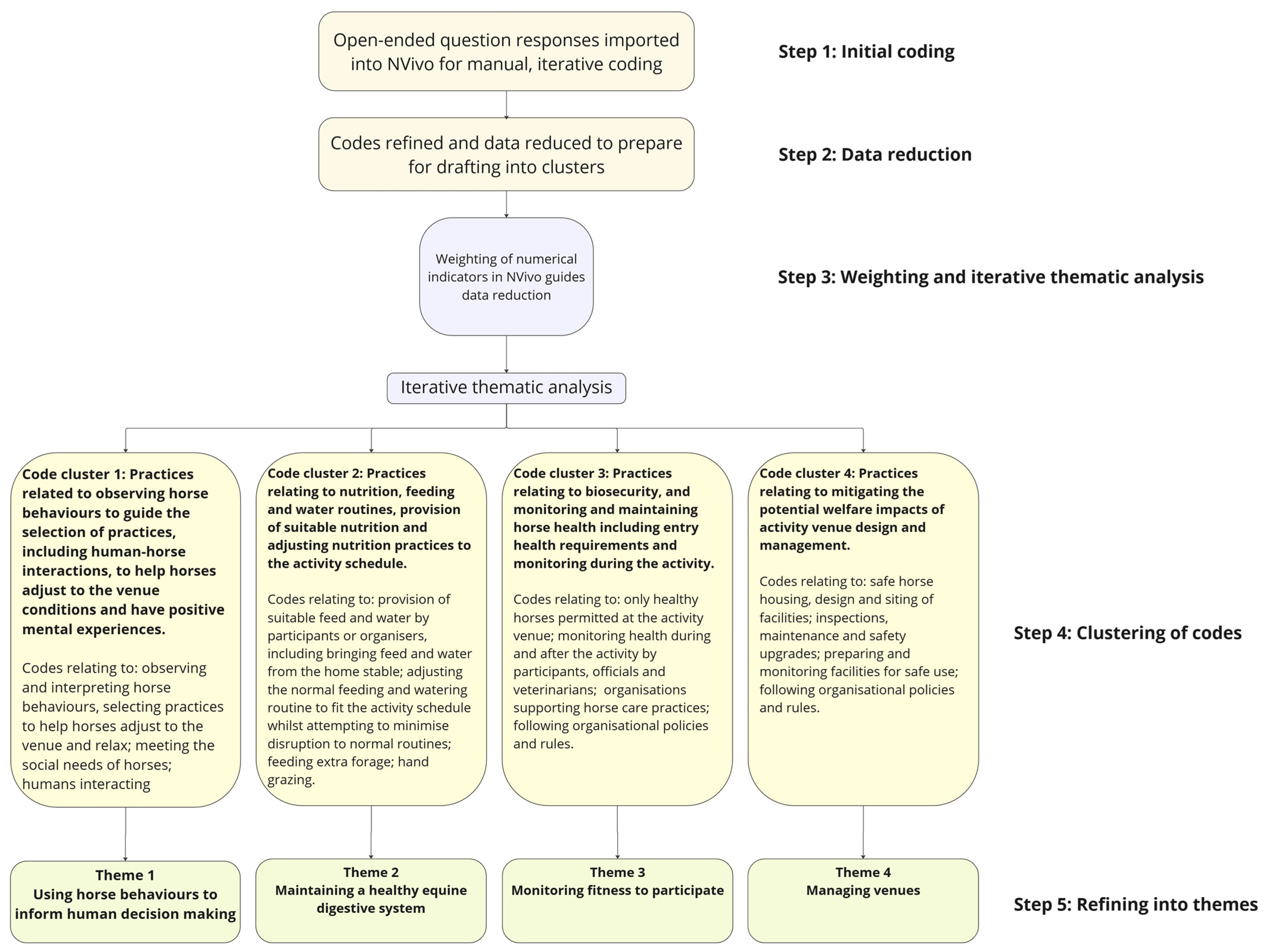 - Fenner, K.; Hyde, M.; Crean, A.; McGreevy, P. Identifying Sources of Potential Bias When Using Online Survey Data to Explore Horse Training, Management, and Behaviour: A Systematic Literature Review. Vet. Sci. 2020, 7, 140. [Google Scholar] [CrossRef] [PubMed]