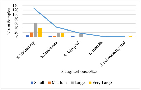 The distribution of the five main Salmonella serovars according to slaughterhouse size is shown in Figure 2.